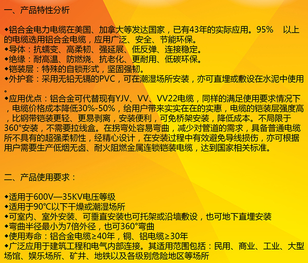 鋁合金電纜:鋁合金電纜ZR-YJLHV 瀏覽:3593
